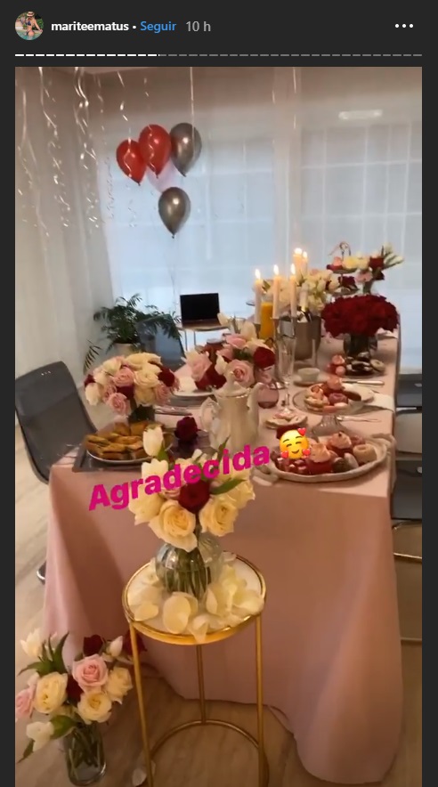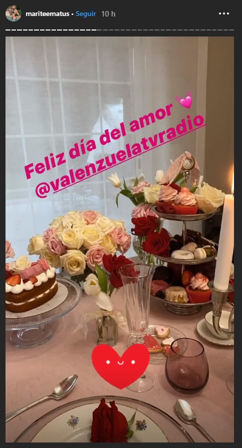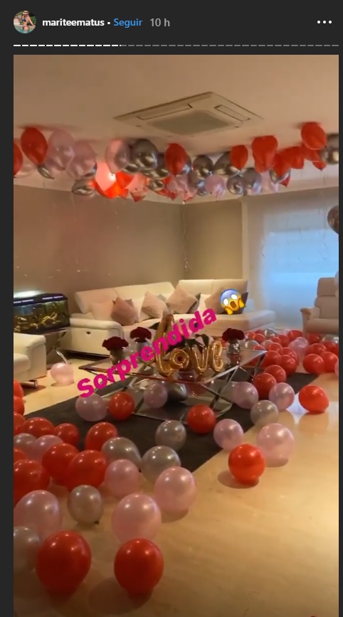 A través de las historias de Instagram, Marité compartió registros de su casa, que estaba llena de globos, arreglos florales y dulces, que fueron enviados por el locutor a modo de celebración del Día del Amor. En las imágenes, ella reconoció sentirse sorprendida y agradeció el gesto.