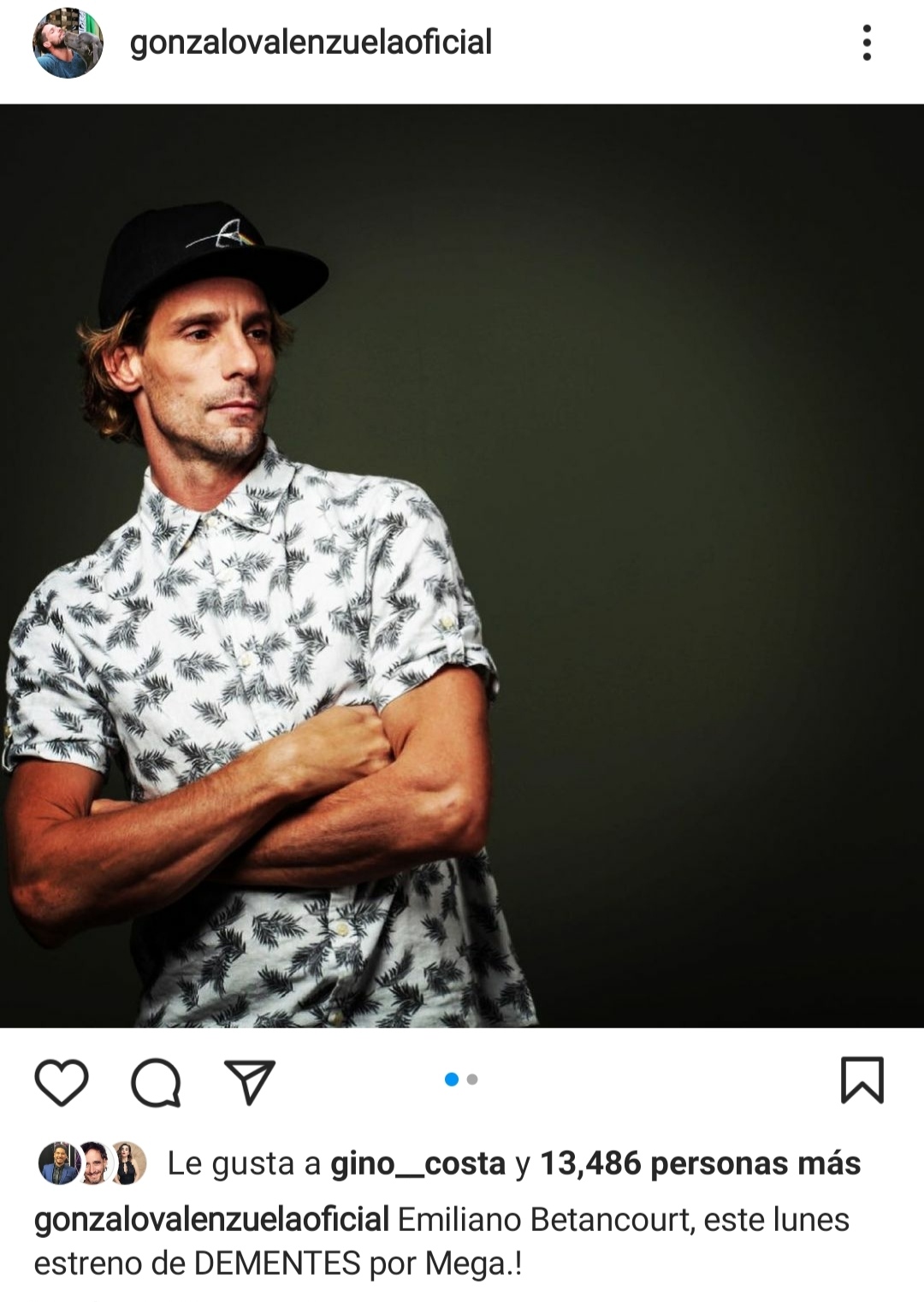 'Emiliano Betancourt, este lunes estreno de DEMENTES por Mega', escribió el actor de 43 años, acompañando el mensaje por dos fotografías.