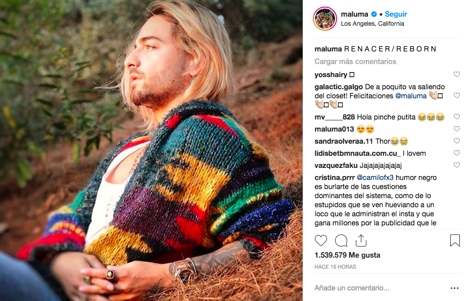 El intérprete de "Felices los 4" acompañó la imagen con un mensaje: "Renacer/ Reborn". La publicación tuvo mas de un millón de "Me gusta", y cientos de comentarios.