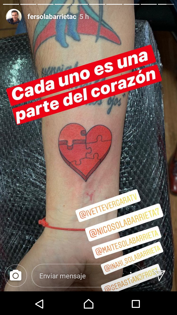 A través de Instagram Stories, Fernando Solabarrieta compartió todo el proceso del tatuaje familiar que se hicieron este jueves.