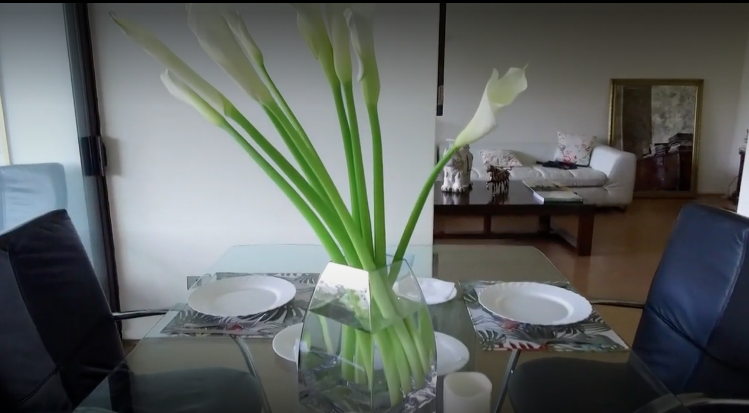 "Este es la casa de Santiago, porque ustedes saben que yo vivo en Viña. Este departamento nos recibe en Santiago cuando venimos con Luciano y Lorencito", contó la modelo mientras comía junto al resto de los participantes.
