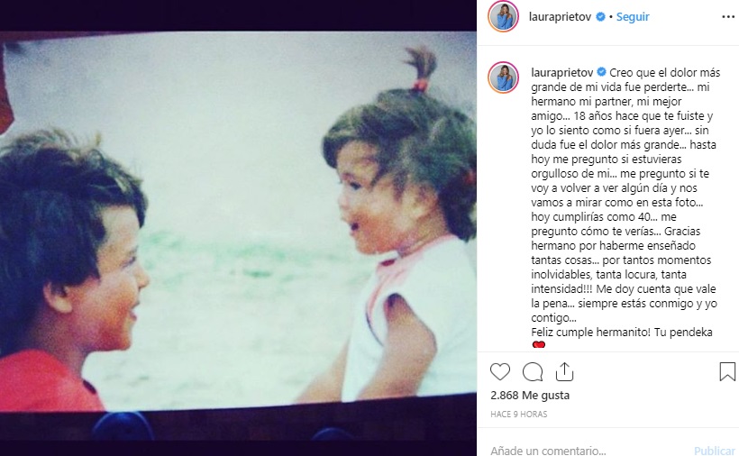 “Creo que el dolor más grande de mi vida fue perderte… mi hermano mi partner, mi mejor amigo… 18 años hace que te fuiste y yo lo siento como si fuera ayer…", comenzó escribiendo.