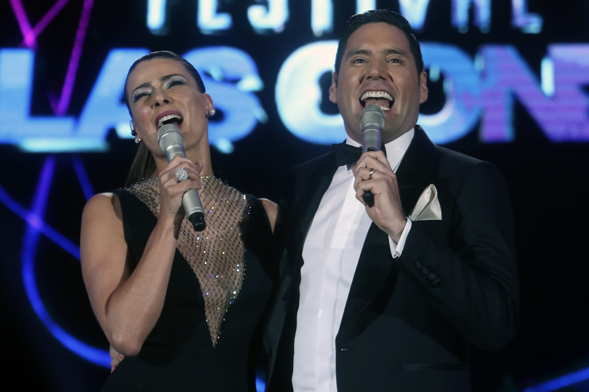 Y como ya es tradición en los festivales nacionales, el público pidió el 'beso' entre los animadores, el que ellos, muy obedientes, realizaron.