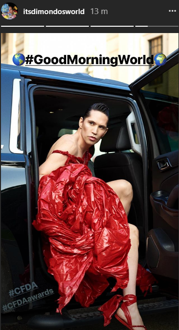Di Mondo compartió una foto en que aparece posando con el traje diseñado por la estudiante de moda Imanchenonceau.