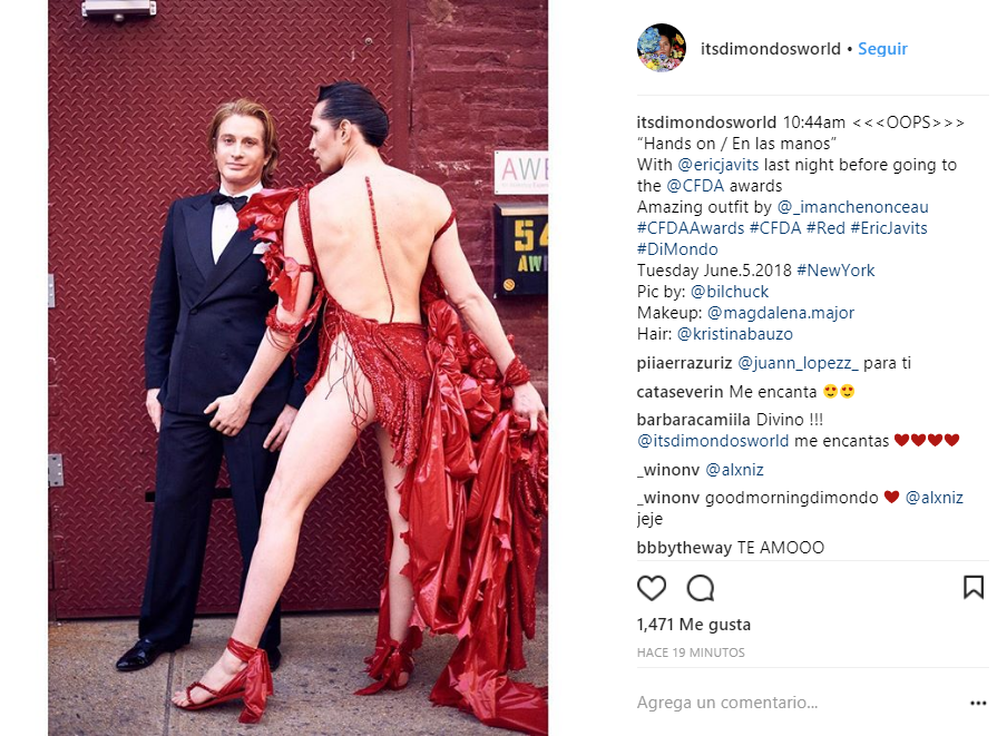 Di Mondo nuevamente sorprendió en sus redes sociales con un extravagante traje. Esta vez lo hizo durante un evento de moda en Nueva York, donde asistió junto a su pareja, Eric Javits.