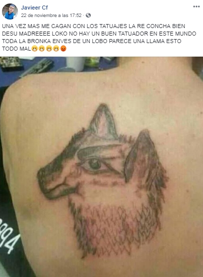 Eso fue lo que le pasó a Javier, un joven oriundo de Argentina que se hizo famoso en las redes sociales, debido a sus dos terribles tatuajes, que causaron más de alguna risa. El primer tatuaje fallido, fue una versión de Harley Quinn y luego un lobo con aspecto de llama.