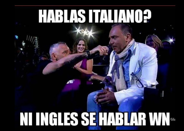 El cantante se acercó al intérprete de "Un golpe de suerte", y lo invitó a cantar en italiano pero éste se excuso de no saber el idioma.