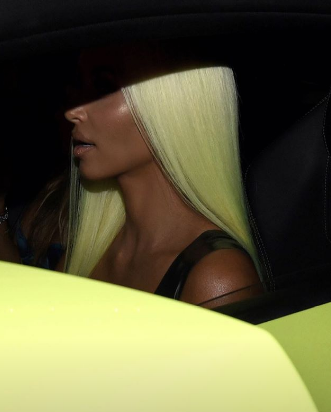 La modelo se ha caracterizado por compartir nuevos cambios de look, con diferentes colores en él. Esta vez se decidió por un color entre verde y amarillo fosforescente. Su estilo es acompañado con un vestido negro apretado y corto.