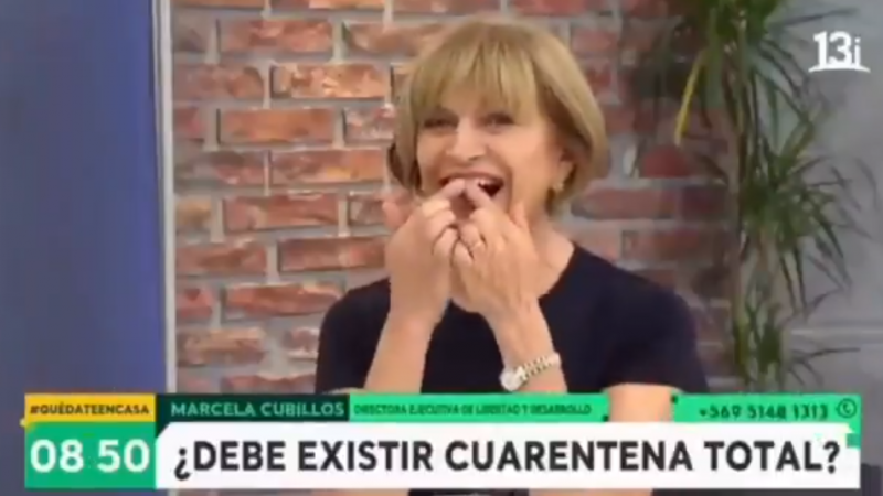 Fue aquí donde se vio a la animadora y también a la alcaldesa haciendo un gesto extraño con sus dientes, que no pasó desapercibido en redes sociales. Y pese a que el programa continúo sin referirse al tema, el video se comenzó a viralizar en redes sociales. De hecho, en twitter tiene más de 700 retweets y más de mil "me gusta".