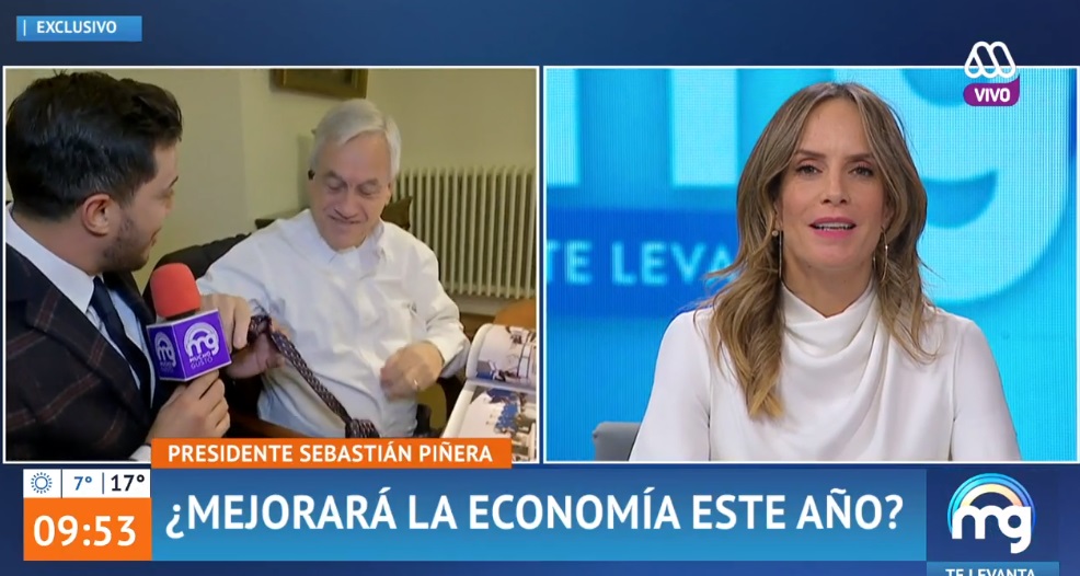 Esta mañana el matinal "Mucho gusto" tuvo la oportunidad de entrevistar al presidente Sebastián Piñera, en directo desde La Moneda, siendo el periodista Simón Oliveros el enviado especial.