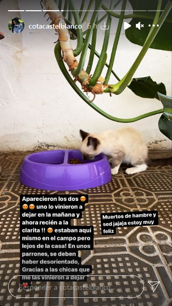 Afortunadamente, todo el drama quedó atrás pues en las últimas horas, Cota Castelblanco utilizó su misma cuenta de Instagram para comunicar que sus gatitos ya están de vuelta en su hogar.