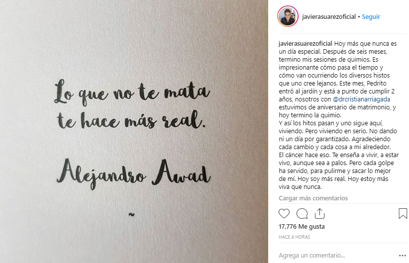 Luego agregó que "este mes, Pedrito entró al jardín y está a punto de cumplir 2 años, nosotros con Cristián Arriagada estuvimos de aniversario de matrimonio, y hoy termino la quimio".