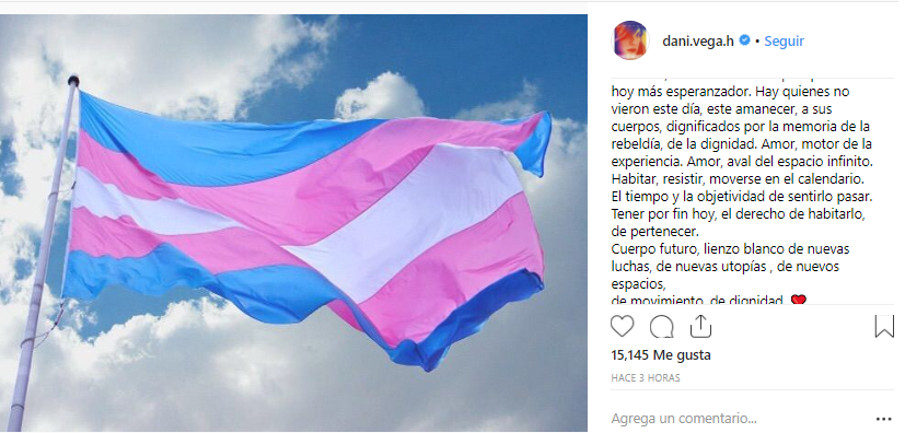 Finalmente, terminó su emotivo mensaje con estas palabras: "tener por fin hoy, el derecho de habitarlo, de pertenecer. Cuerpo futuro, lienzo blanco de nuevas luchas, de nuevas utopías, de nuevos espacios, de movimiento, de dignidad. #RebeldíaResistenciaAmor".