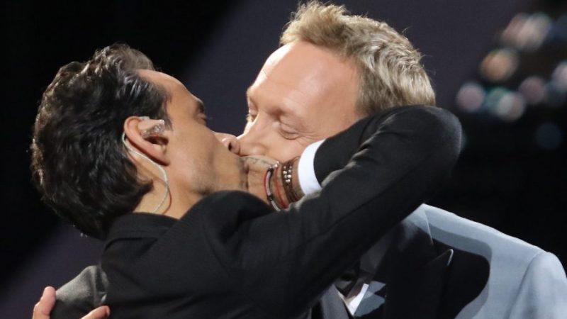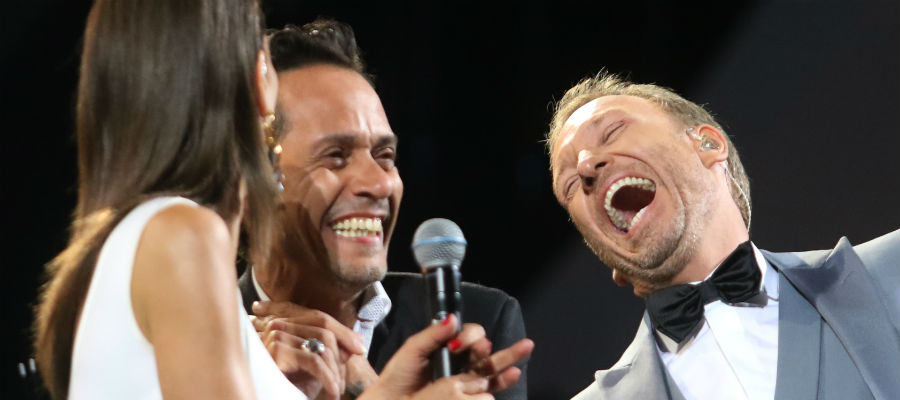 Y es que cuando le entregaban el primer galardón, Marc Anthony rebosaba amor hacia el público y también hacia los animadores, por lo que besó en la mejilla a María Luisa Godoy y 'en la boca' a Martín Cárcamo.