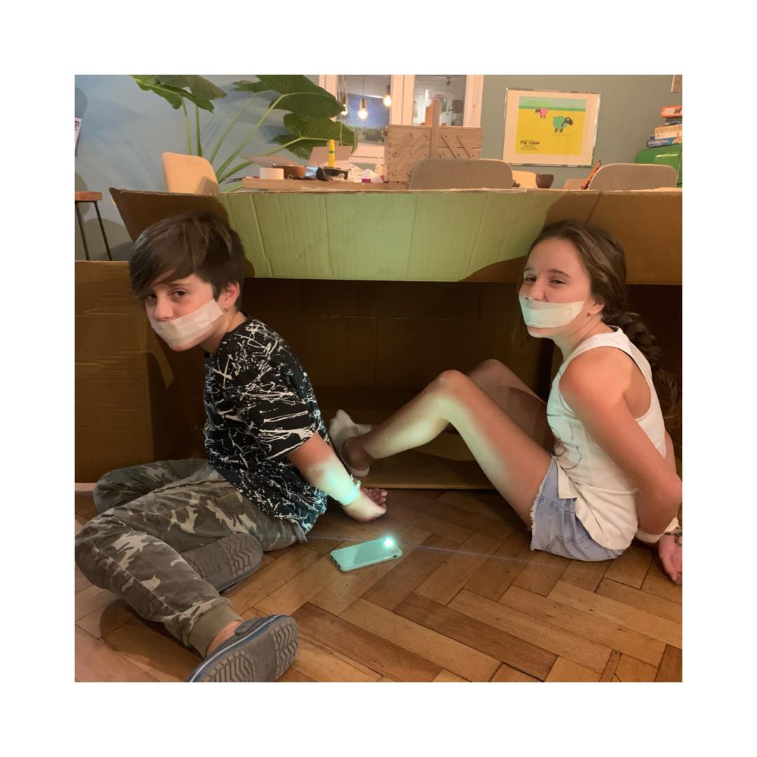 “Cuando se acaba la paciencia… (Obvio que es un juego). A pedido del público instrucciones: (la caja estaba boca abajo con ellos adentro y una luz, el celular) salir de la caja amarrados y amordazados... pero ojo, la idea fue de ellos!!!!", escribió Luz junto a la foto de los niños como 'prisioneros'.