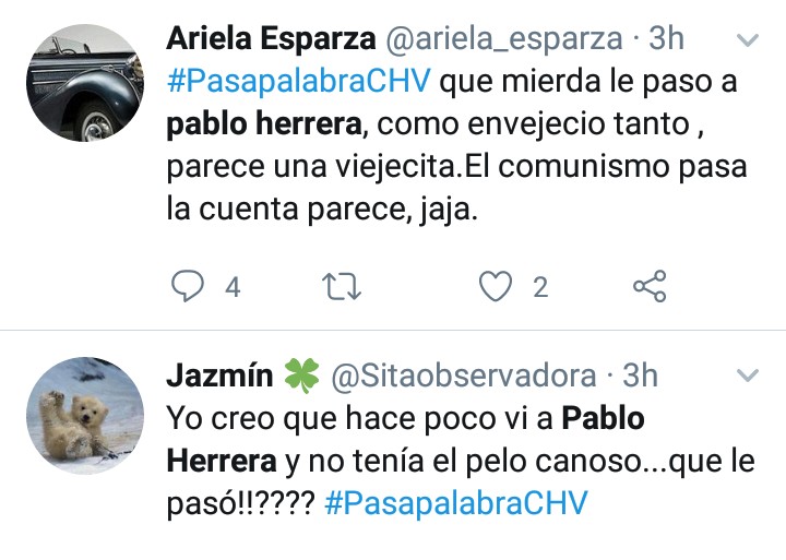 Y es que, efectivamente, Pablo Herrera no se había mostrado en televisión con el pelo tan canoso, lo que generó sorpresa entre los tuiteros.