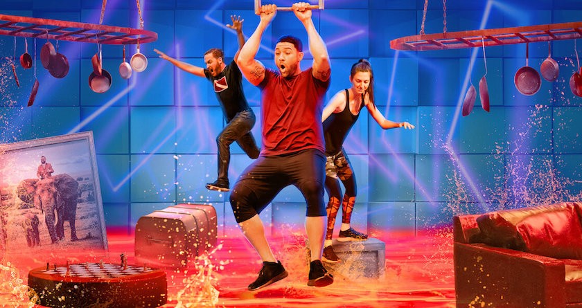 "Los equipos compiten para superar las habitaciones inundadas de lava saltando desde las sillas, colgando de las cortinas y balanceándose de las lámparas de araña. Sí, de verdad", explicaron desde el programa.
