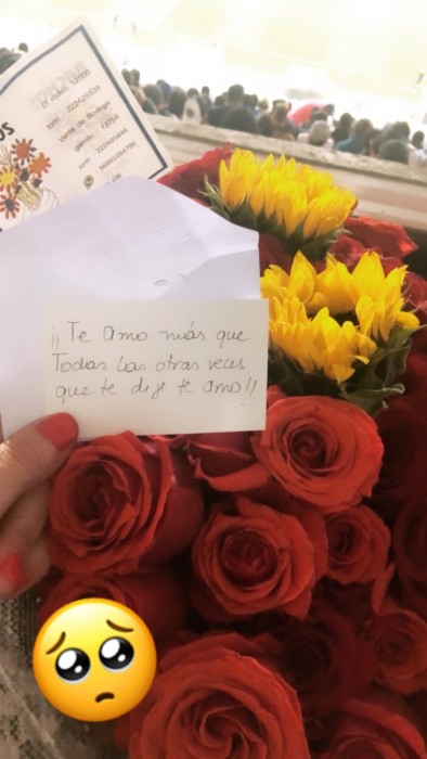 La ex panelista explicó que era un regalo bien pensado, ya que: "Además de las rosas, tiene dos girasoles, que son las flores que yo siempre les regalo a nuestros hijos, Jorgito y Agustina. Además venía con una tarjetita con el mensaje ‘te amo más que todas las otras veces que te dije te amo’. Eso me lo escribió Jorgito para el día de la madre, Jorge lo leyó y quiso dedicarme lo mismo”.