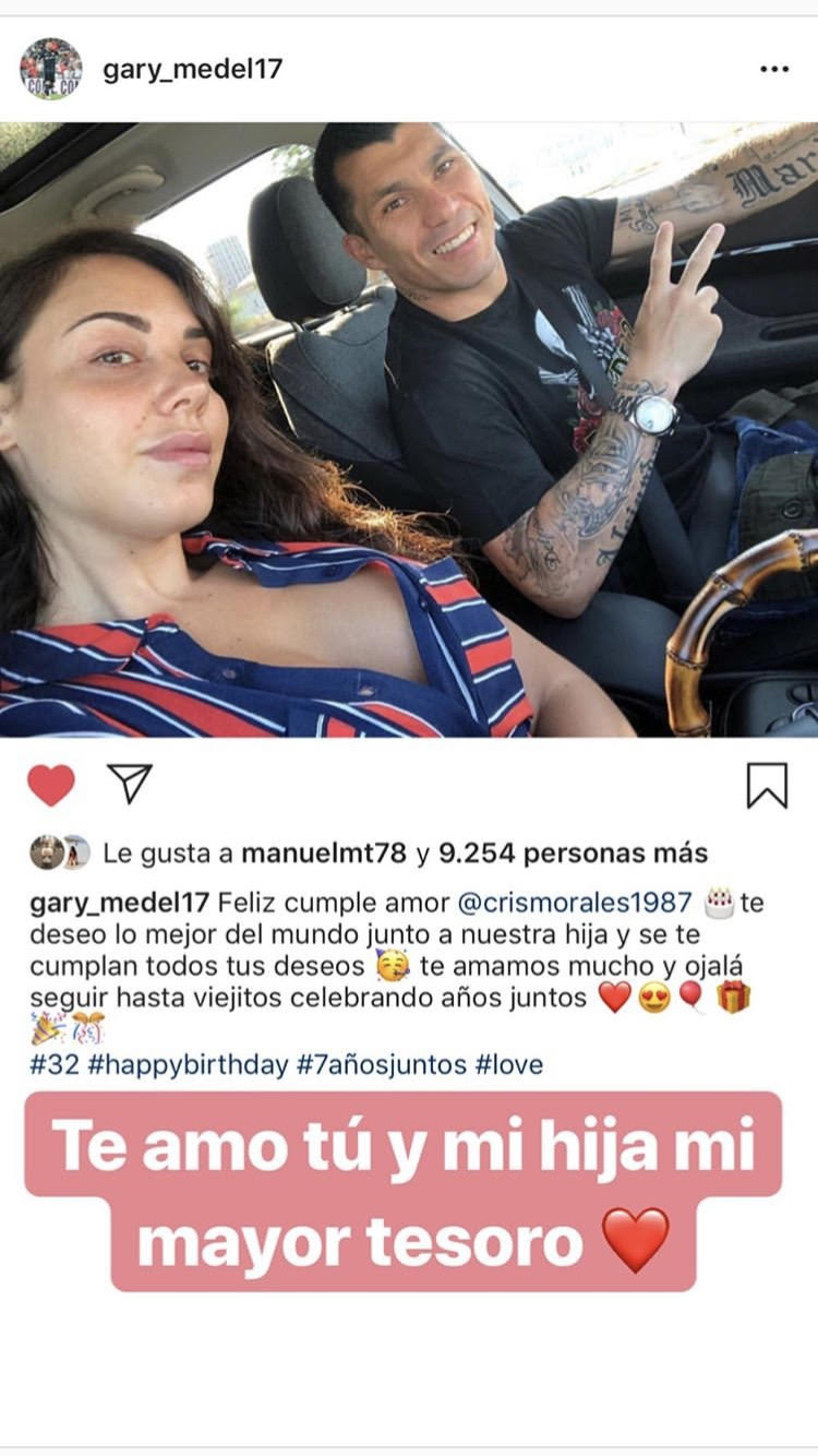 ."Feliz cumple amor @crismorales1987 🎂te deseo lo mejor del mundo junto a nuestra hija y se te cumplan todos tus deseos 🥳 te amamos mucho y ojalá seguir hasta viejitos celebrando años juntos ❤️😍🎈🎁🎉🎊 #32 #happybirthday #7añosjuntos #love", escribió el volante del Beşiktaş.
