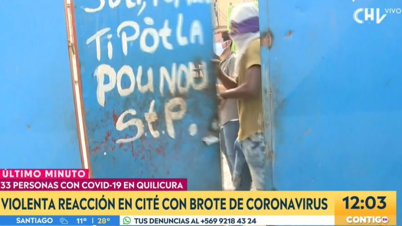 Esto porque mientras vecinos del sector se manifestaban afuera para que aislaran a los extranjeros contagiados, algunos haitianos acusaron que los chilenos los estaban discriminando y exigían que los trataran con respeto.