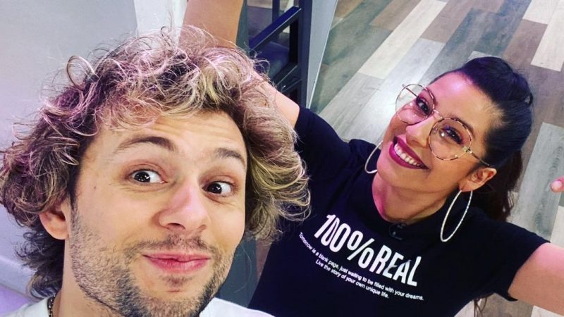 La joven que conocimos en "Rojo" con su talento vocal dio una nueva vuelta al sol, y Joaquín subió una foto donde aparece abrazando a su compañera de trabajo, en una de las jornadas que comparten animando el programa de concursos, La hora de jugar, de Mega.