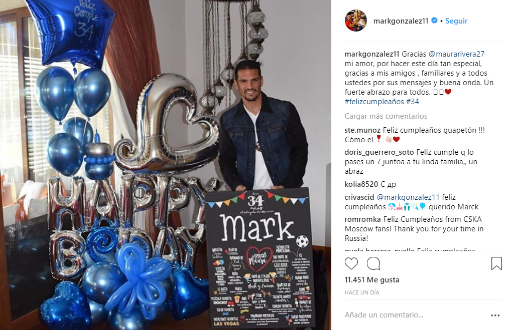 Por su parte, el futbolista agradeció la sorpresa y escribió en las redes sociales "Gracias @maurarivera27 mi amor, por hacer este día tan especial, gracias a mis amigos , familiares y a todos ustedes por sus mensajes y buena onda. Un fuerte abrazo para todos".