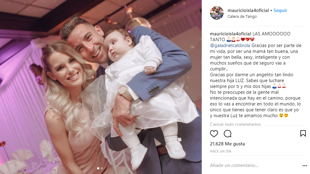 Y es que hace algunos días, la pareja bautizó a su hija Luz Elif, que solo tiene tres meses. Fue una de las fotografías de la ceremonia la que Mauricio Isla aprovechó para enviar un tierno mensaje a su actual pareja.