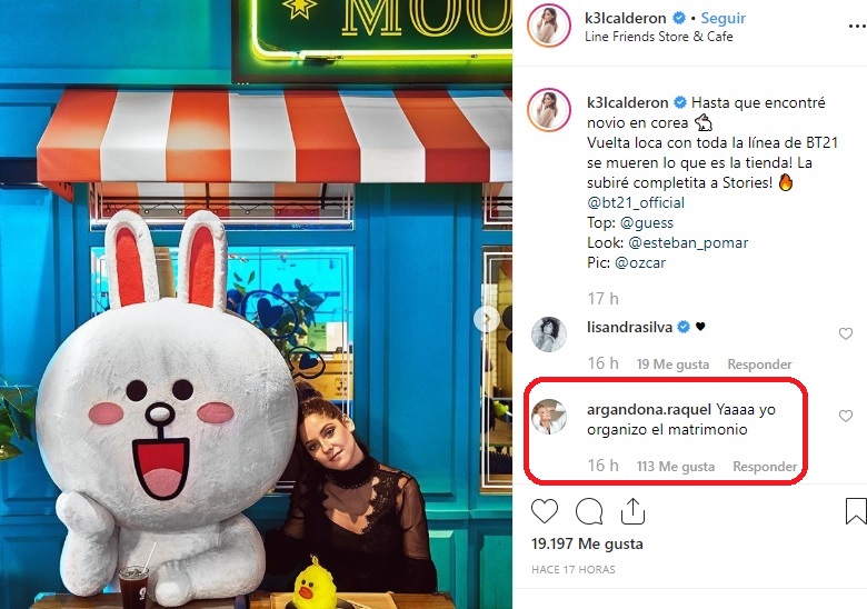 La publicación recibió múltiples reacciones, siendo una de las primeras la de la 'Quintrala'. "Yaaaa, yo organizo el matrimonio", le escribió Raquel en tono de broma a su hija.