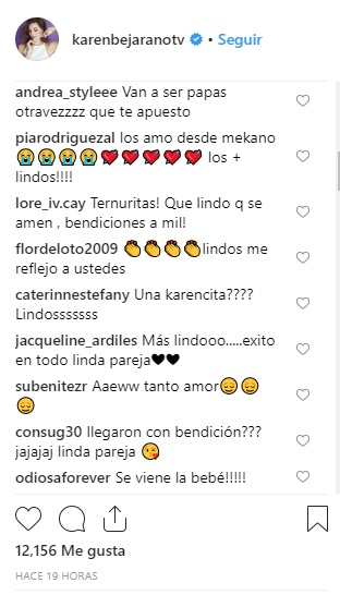 La publicación ya llegó a más de 12 mil "Me gusta", donde muchos de sus seguidores los felicitaron por lo lindos que se ven. Y entre esos comentarios, algunos de ellos comenzaron a preguntarse si ese 'giro importante' tendría relación con un posible embarazo de la ex "Mekano".