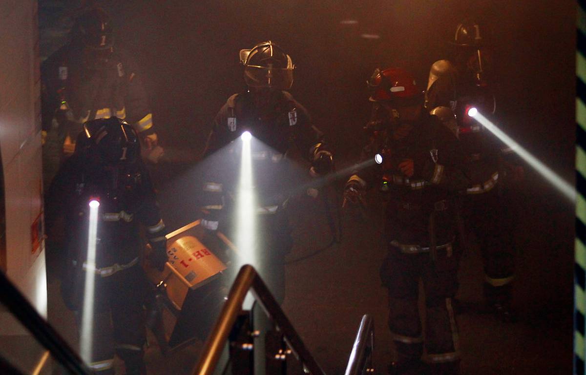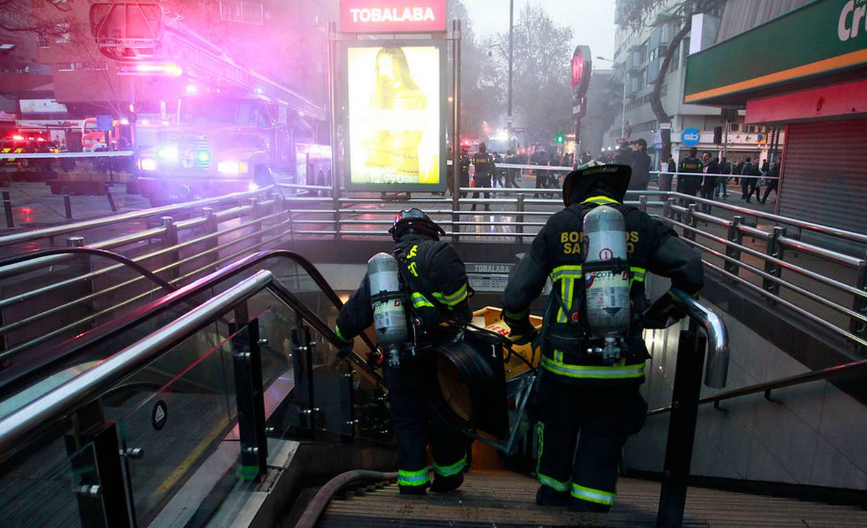 Aqui bomberos cuando llegaban a estación metro tobalaba. pic.twitter.com/RSAKa5CBQB
