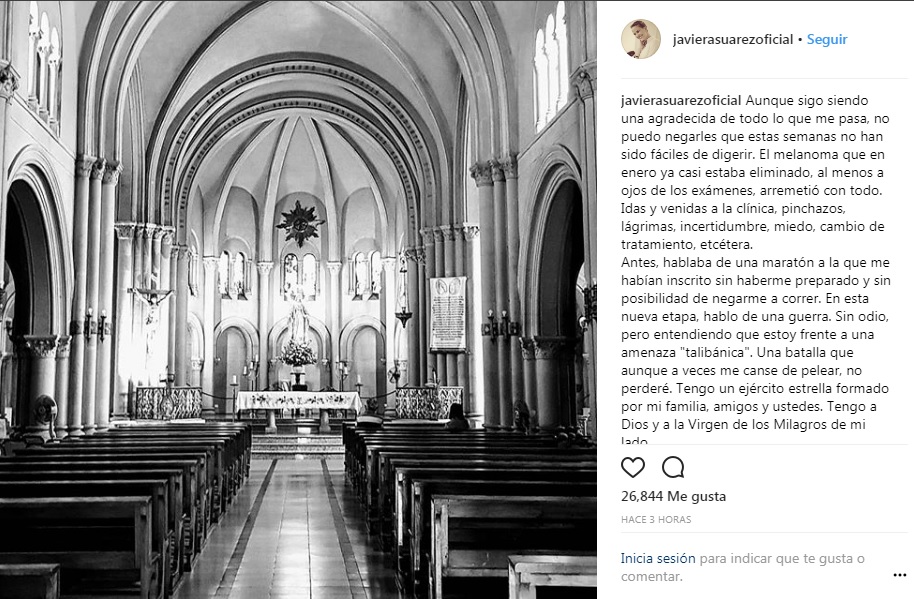 "Aunque sigo siendo una agradecida de todo lo que me pasa, no puedo negarles que estas semanas no han sido fáciles de digerir", así parte del duro mensaje con el que Javiera Suárez revela su actual estado de salud.