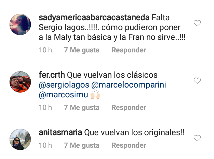 No obstante, el programa de Canal 13 fue ampliamente criticado en redes sociales, pues los televidentes no solo extrañan a Sergio Lagos, sino que tampoco aprueban al nuevo trío de animadores.