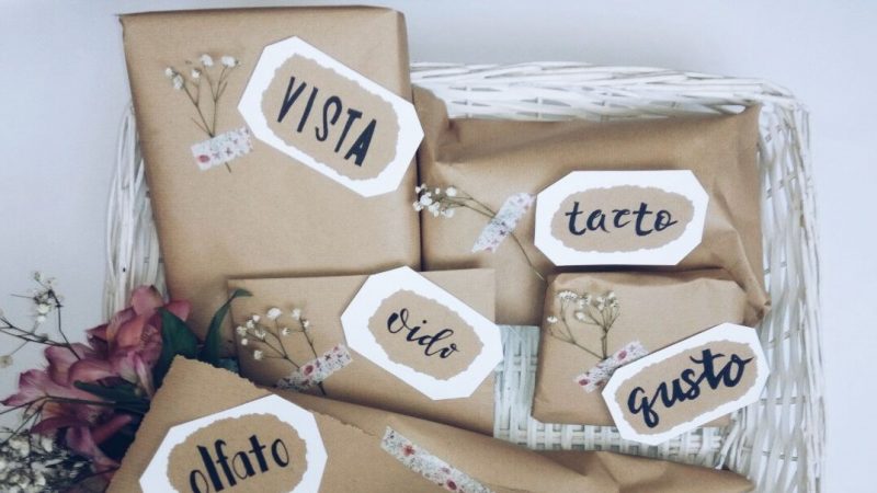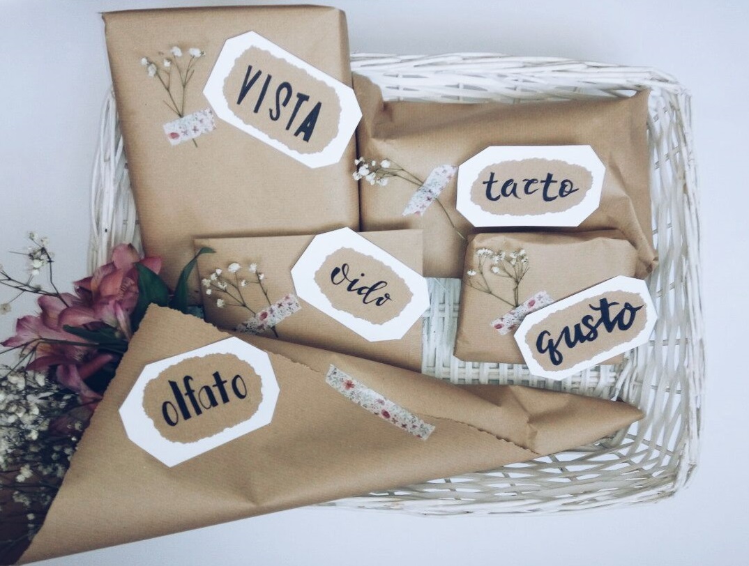 Tal como su nombre lo indica, es una caja que contiene cinco detalles que estimulan cada uno de los sentidos: vista, oído, olfato, gusto y tacto.