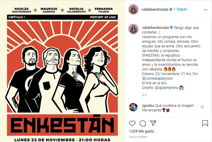 Natalia Valdebenito se unirá al show en formato podcast en vivo Enkestán, un proyecto conformado también por Fernanda Toledo, Mauricio Garrido y Nicolás Montenegro. Este debutará el próximo lunes 23 de noviembre a las 21:00 horas, oportunidad en que podremos pasar un rato entretenido con los locutores.