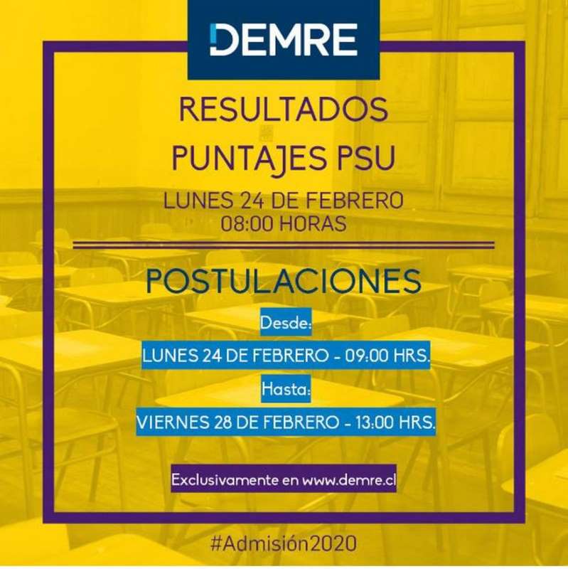 El Departamento de Evaluación, Medición y Registro Educacional (Demre) publicó los puntajes en su sitio oficial.