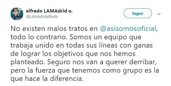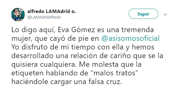 Sin embargo, esta información fue rápidamente contrastada por Alfredo Lamadrid, quien -a nombre de todo el equipo-, utilizó su cuenta de Twitter para salir en defensa de Eva Gómez.