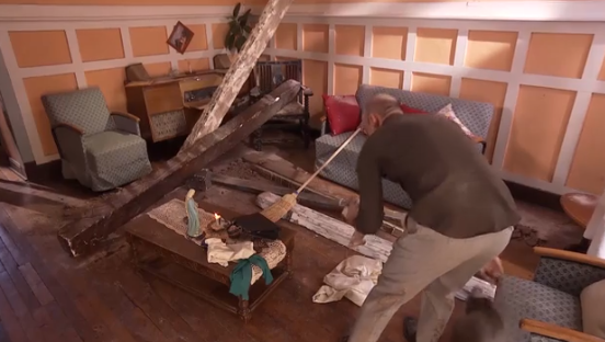 Cuando Nicanor vuelve a su casa después del terremoto, encuentra en el living un sostén de Bárbara (su esposa) en el suelo.