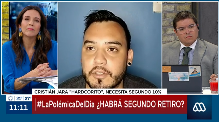 Cristián Jara, quien se hizo conocido como 'Hardcorito' tras su participación en el programa juvenil "Yingo", volvió a la televisión para discutir el segundo retiro del 10% de las AFP. El comunicador estuvo de invitado en el matinal "Mucho Gusto", donde explicó por qué él y otros necesitan ese dinero.
