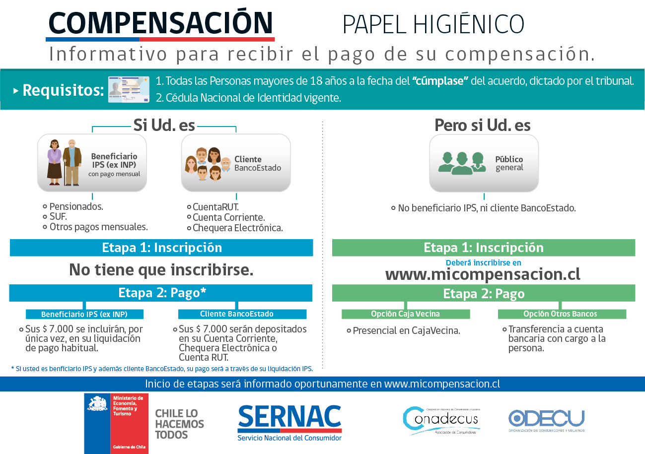 ¡Es oficial! El 10° Juzgado Civil de Santiago confirmó el "cúmplase" del pago de los 7 mil pesos de compensación, tras el acuerdo del Sernac, consumidores y CMPC tras la colusión de papel Tissue.