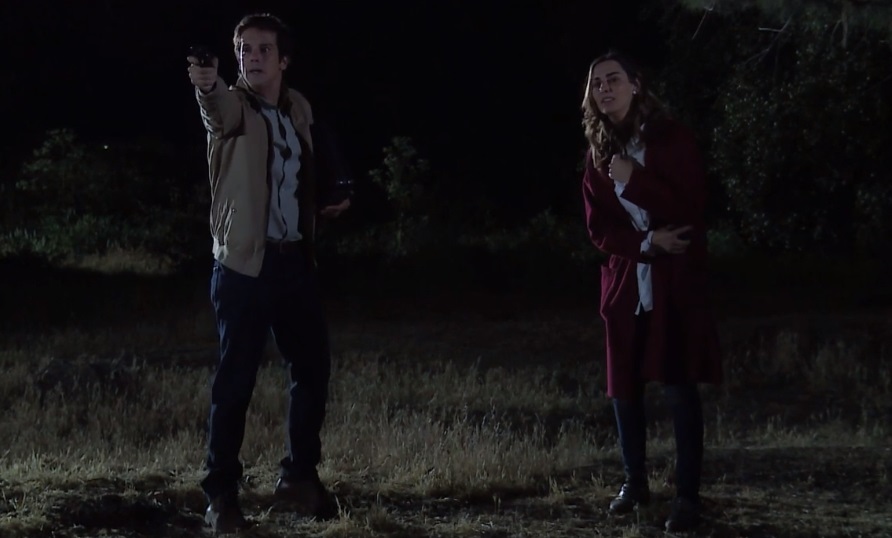 Ahí, el villano obligó a Tomás a botar el arma que tenía y apuntó la de él a ambos, revelando que fue Amelia quien atropelló a Laura, su propia madre.