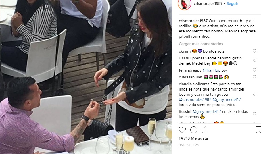 Pero las reacciones de sus seguidores no demoraron en llegar, quienes le dejaron comentarios felicitando lo romántico que al parecer es Gary con su pareja. "No cualquiera deja de rodillas al pitbull" y "¿Qué sucede? Gary en el fondo es una mermelada de amorsh? Awww" y "Gary medel no pide matrimonio, el matrimonio lo pide a Gary ", fueron algunos mensajes que le dejaron.