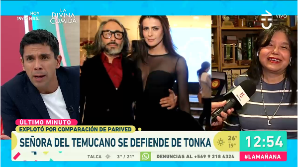 Una tensa situación se vivió en el matinal de "Bienvenidos", ayer, luego de que Tonka defendiera a su esposo, cuando la pareja del músico, Luz Rivera, nombró en la conversación a Parived.