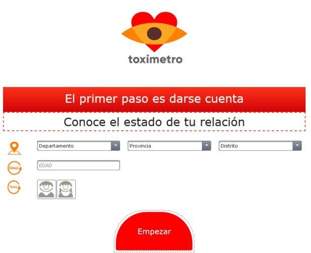 En esta app cualquier persona puede chequear qué tan tóxica es su relación, por lo que las autoridades peruanas la llamaron Toxímetro, pues simula una encuesta que "ayuda a identificar algunas señales de riesgo de violencia de género en tu relación de pareja. Podrás conocer el estado de tu relación y estar alerta ante las primeras señales, para que recibas la ayuda oportuna", según explicaron.