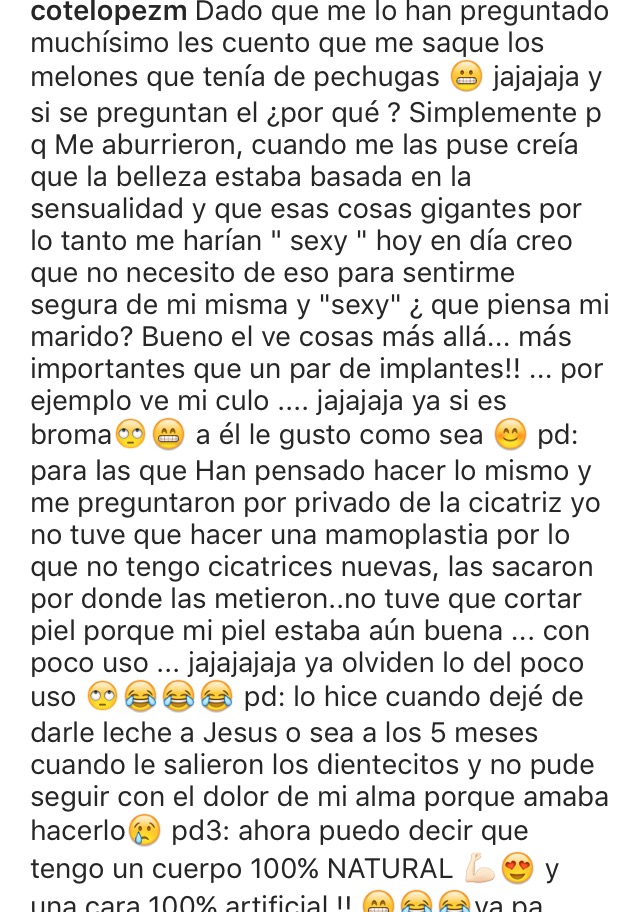 La modelo no dudó en aclararlo, y subió una nueva imagen explicando las razones por las que decidió quitarse los implantes.