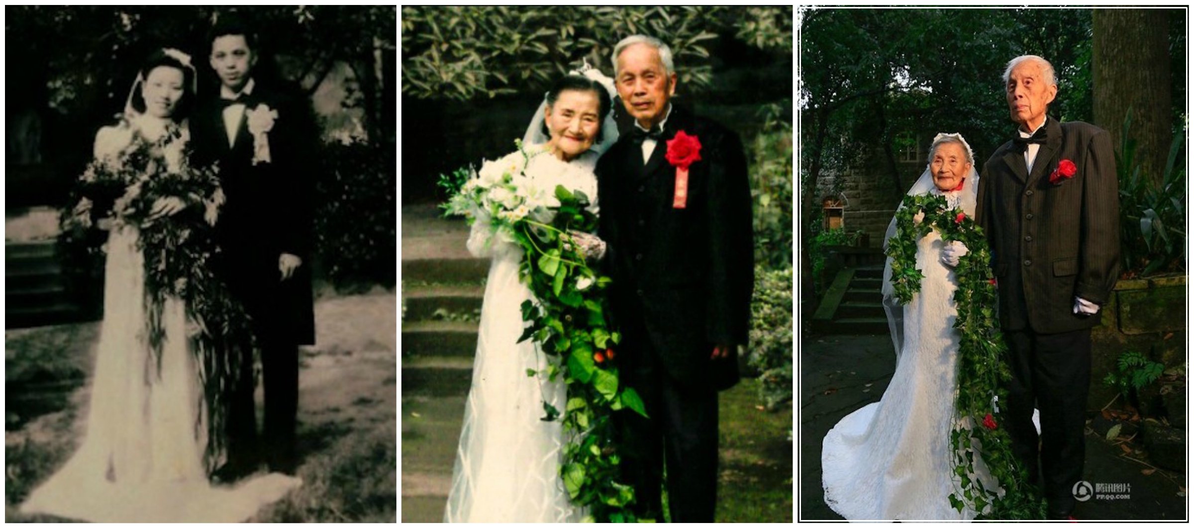 Cao Yuehua y Wang Deyi son dos chinos, de 98 años, que llevan 70 años de matrimonio y para celebrar este nuevo aniversario decidieron recrear las fotografías del día de su boda, ocurrida en 1945. ¡Los resultados son idénticos!