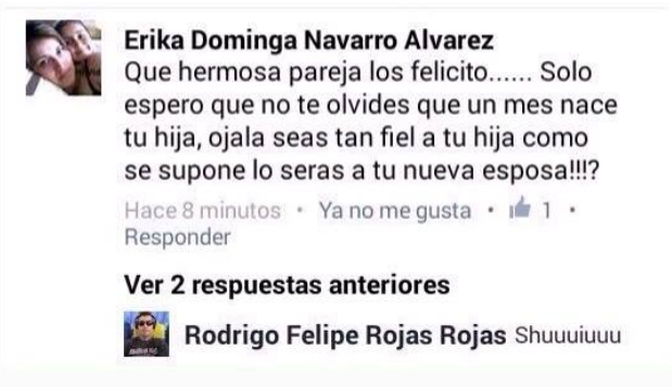 Ese fue el de una mujer llamada Érika Álvarez quién escribió: "Que hermosa pareja... los felicito. Sólo espero de que no te olvides que en un mes nace tu hija. Ojalá seas tan fiel a tu hija como se supone lo serás a tu nueva esposa".El comentario generó una ola de reacciones.