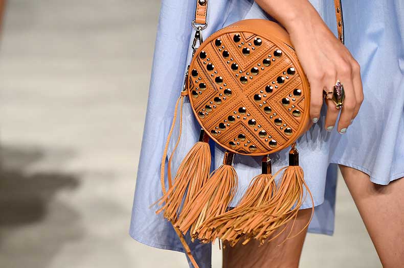 - Circulares: Este modelo lo veremos en cuero o rafia. Las carteras circulares son románticas y femeninas, además de muy cómodas y versátiles.