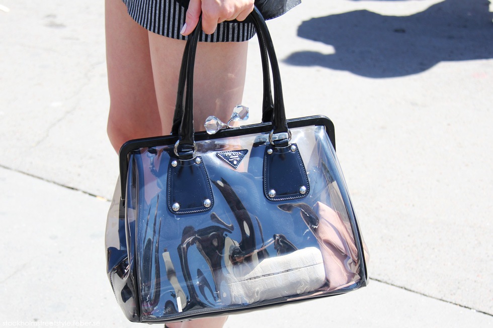- Bag in bag transparente: Se traduce como bolsa en bolsa. Y es que, efectivamente, para que no se trasluzcan las pertenencias, este tipo de cartera combina un doble look. Se trata de un modelo que viene con fuerza para el diario y también para la playa.