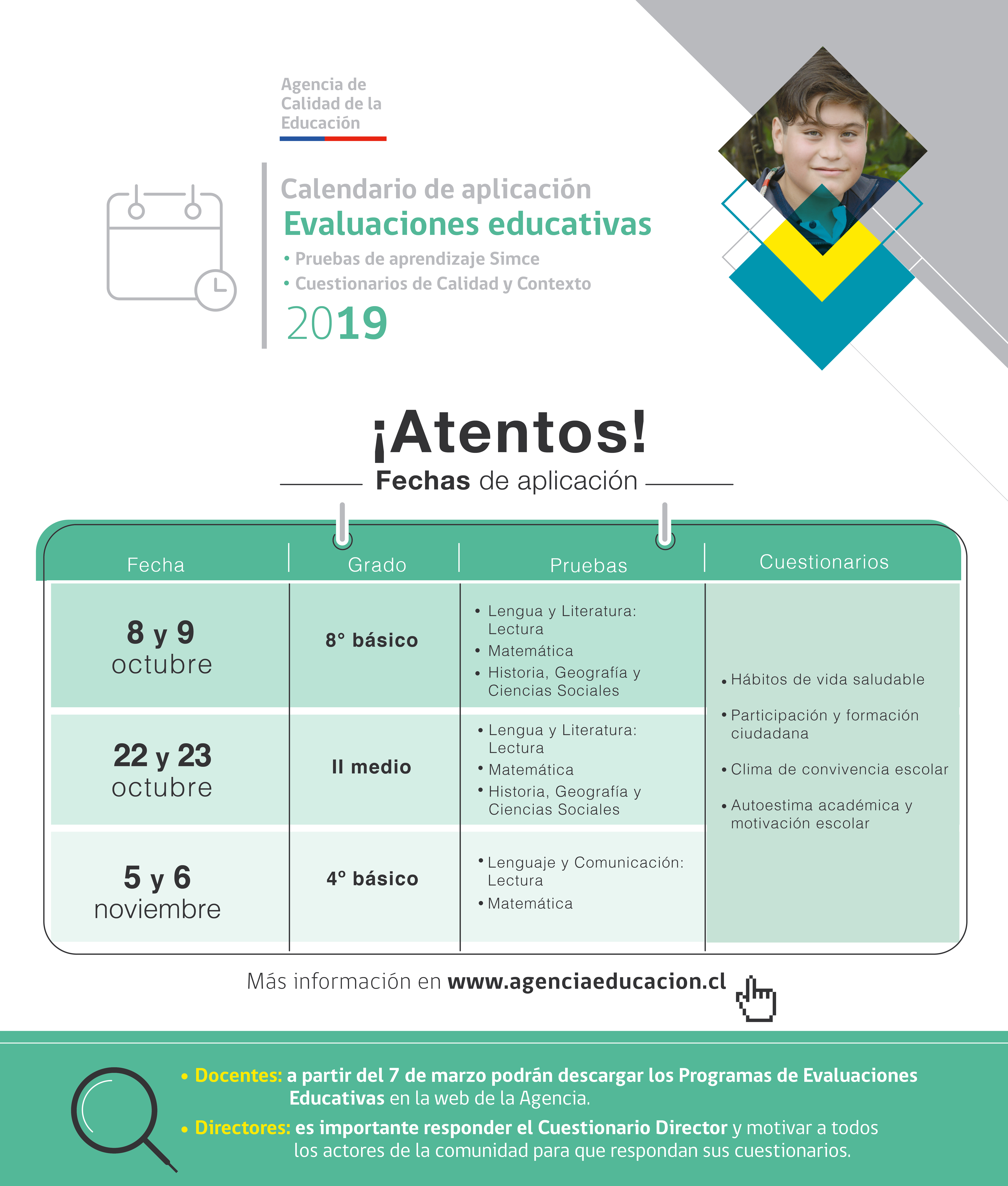 El 22 y 23 de octubre, rinden esta prueba los segundos medios. Y en noviembre, 5 y 6, los alumnos de 4 básico van a rendir esta prueba.