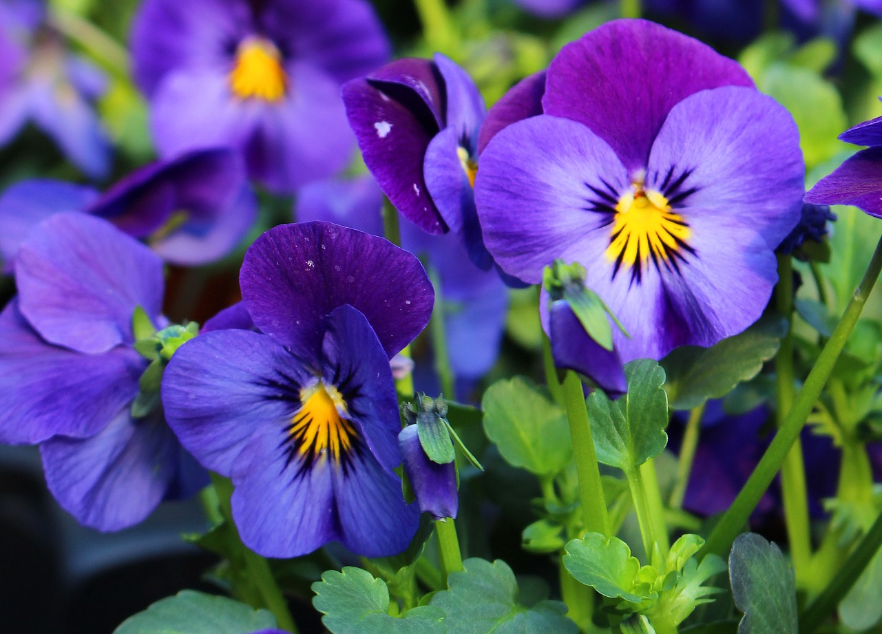 Por eso sus flores son: pensamiento, flores de hiedra, cantaurea, cáñamo, escoba escocesa, trillium, camelias.